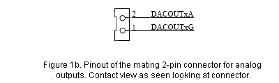 Figures 1a and 1b show the pinout of the 2-pin connector on the output modules and the mating connector on the cable.