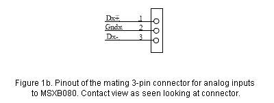 Figures 1a and 1b show the pinout of the 3-pin connector on the input module and the mating connector on the cable.
