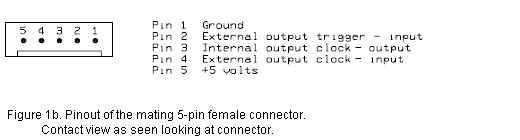 Figures 1a and 1b show the pinout of the 5-pin connector on the DAP boards and the mating connector on the cable.