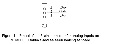 Figures 1a and 1b show the pinout of the 3-pin connector on the input module and the mating connector on the cable.