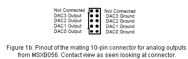 The 10-pin headers are used for analog outputs on the following model of MSXB056, where m denotes package form: